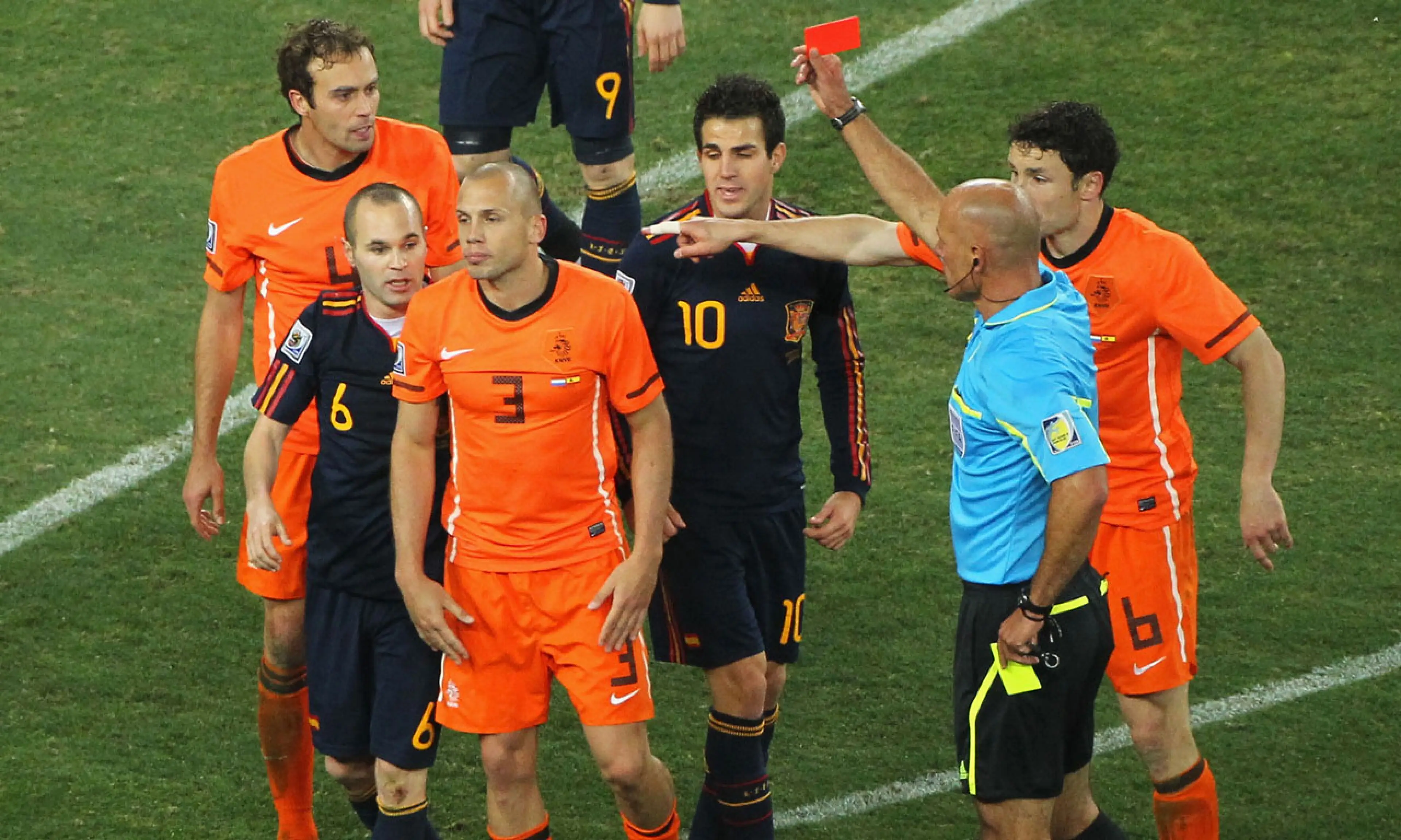 Johnny Heitinga ‘wanted to attack Howard Webb’ after red card in World Cup final and explains key decision officials got wrong which cost Netherlands in extra-time v Spain