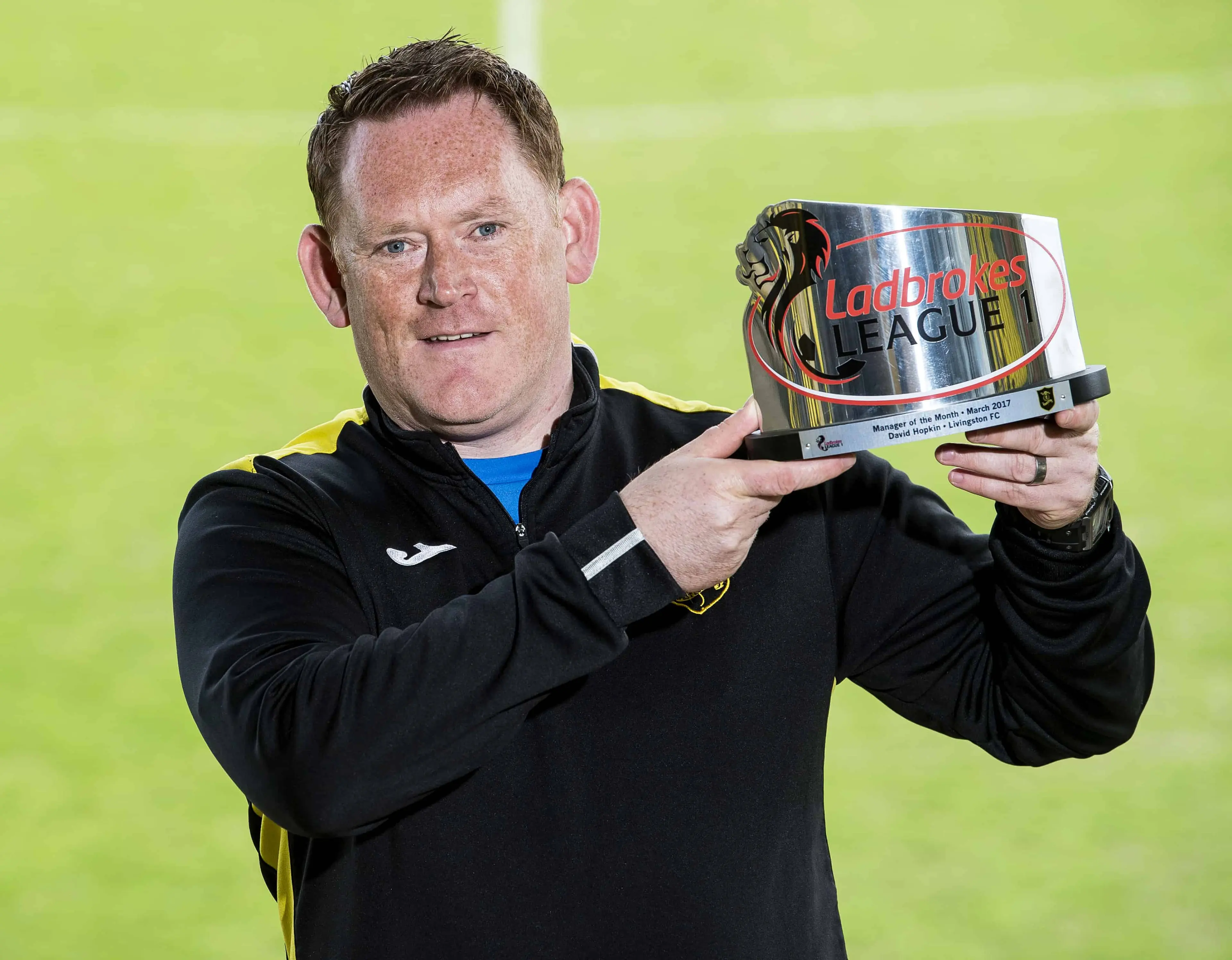 Livingston boss David Hopkin has been named the Ladbrokes League 1 Manager of the Month for March.